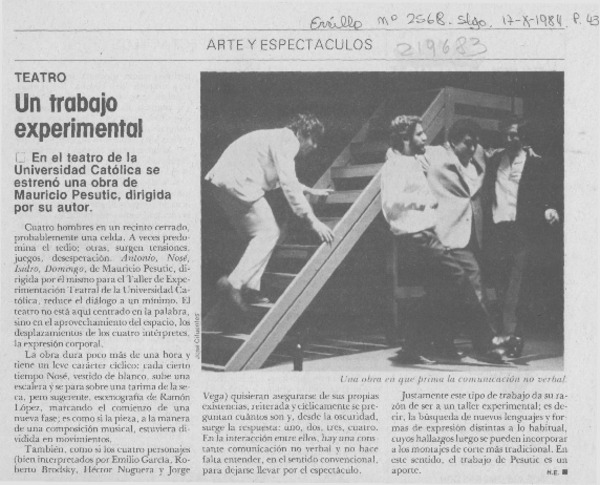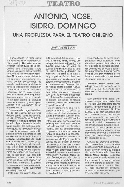 "Antonio, Nosé, Isidro, Domingo" una propuesta para el teatro chileno [artículo] Juan Andrés Piña.