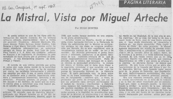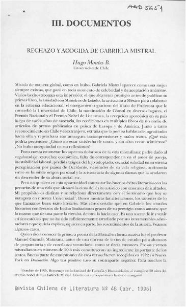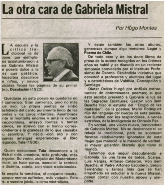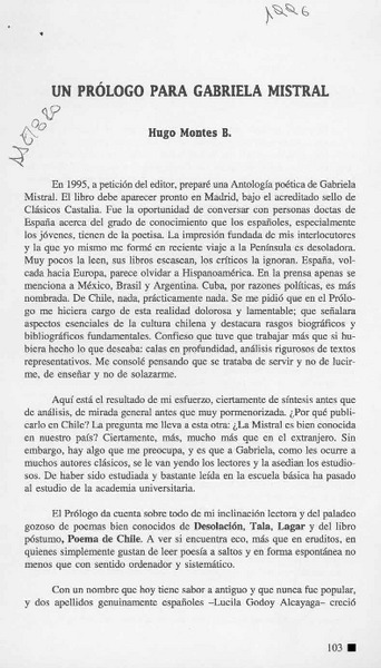 Un prólogo para Gabriela Mistral [artículo] Hugo Montes B.