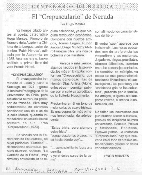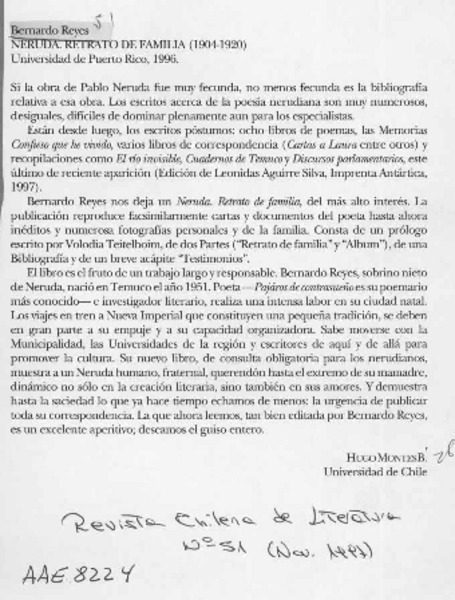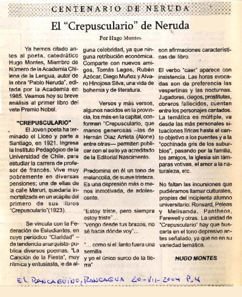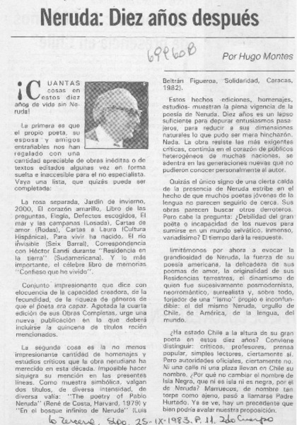 Un nuevo libro de Neruda [artículo] Hugo Montes.