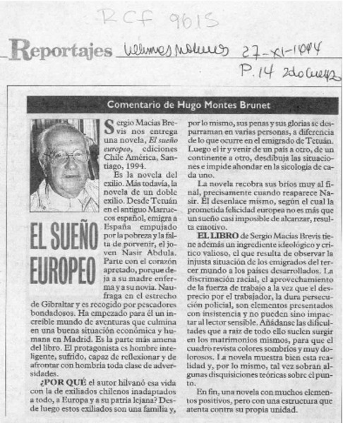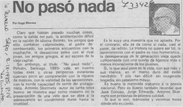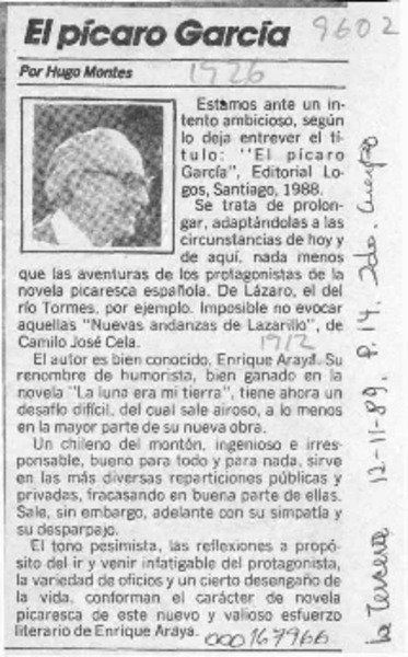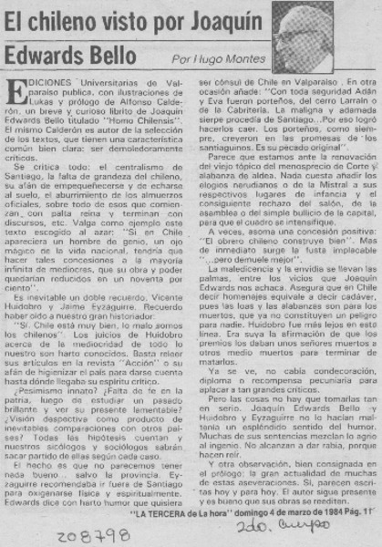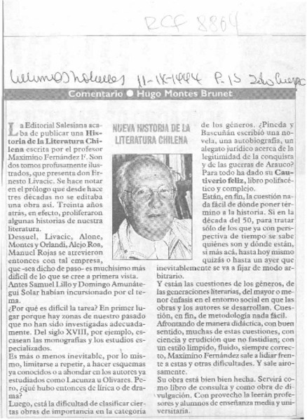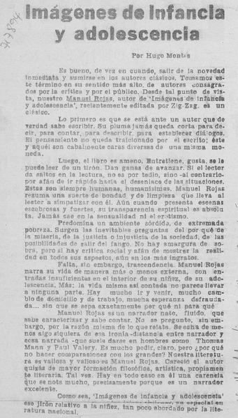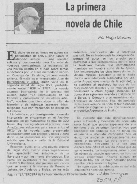 Un novelista nuevo en Chile [artículo] Hugo Montes Brunet.