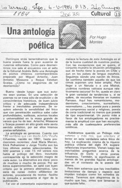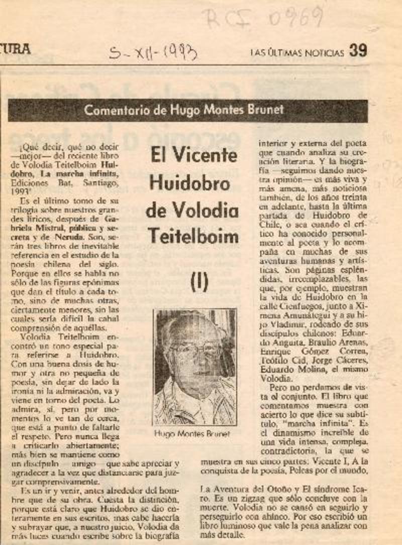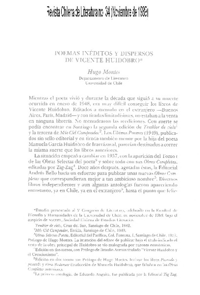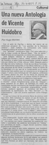 Una nueva Antología de Vicente Huidobro [artículo] Hugo Montes.
