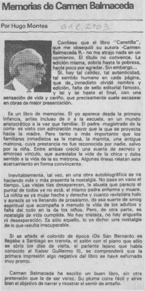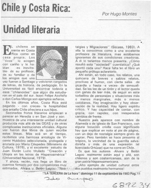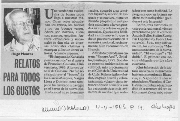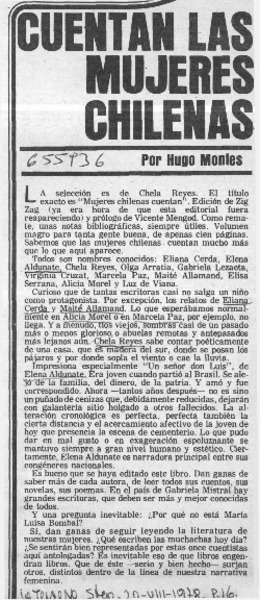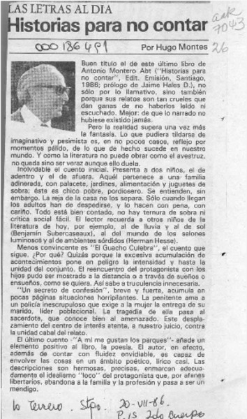 Alicia Morel y los cuentos chilenos [artículo] Hugo Montes.