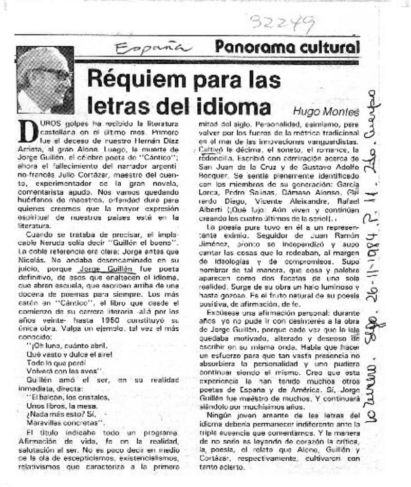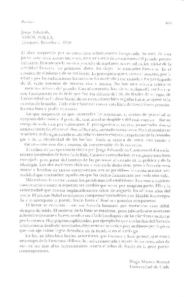 Adiós, poeta [artículo] Hugo Montes Brunet.