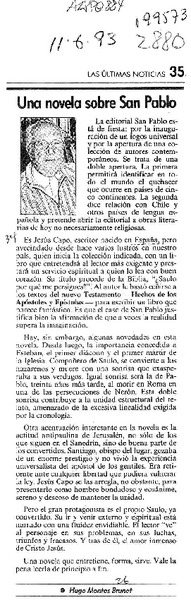 Una novela sobre San Pablo [artículo] Hugo Montes Brunet.