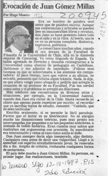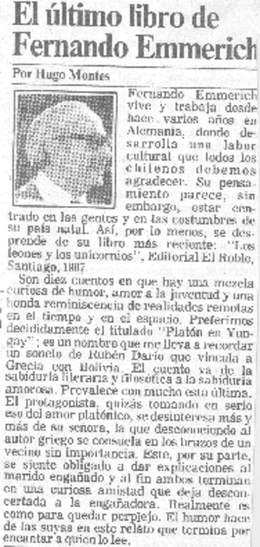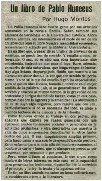 Un libro de Pablo Huneeus [artículo] Hugo Montes.