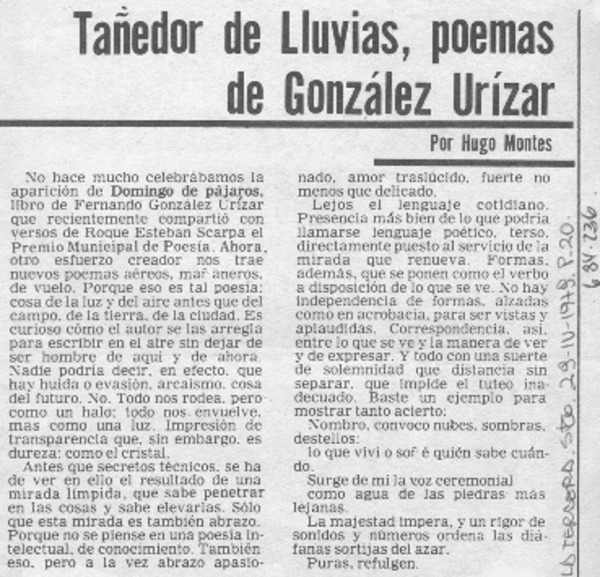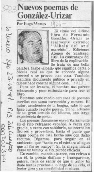 Una antología de Fernando González Urízar [artículo] Hugo Montes Brunet.
