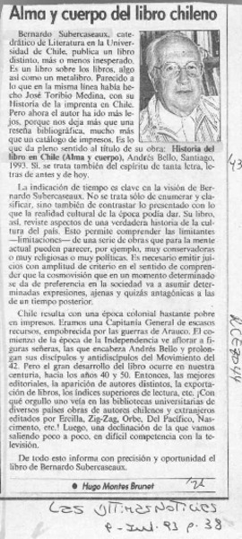 Alma y cuerpo del libro chileno [artículo] Hugo Montes Brunet.