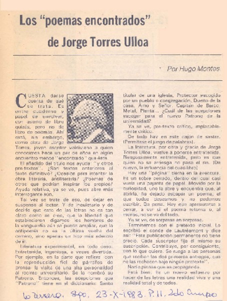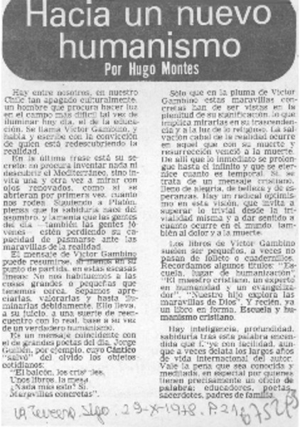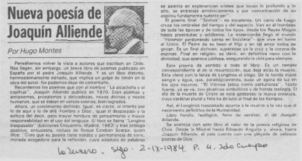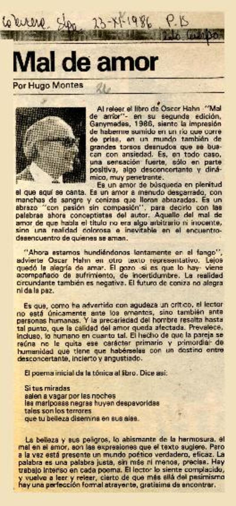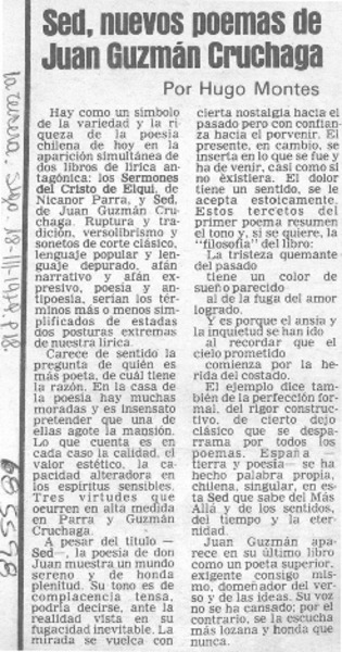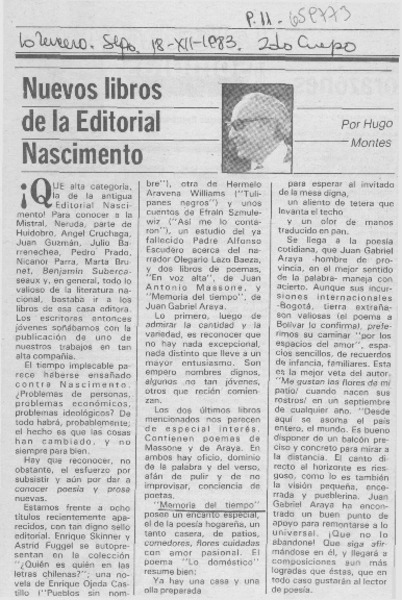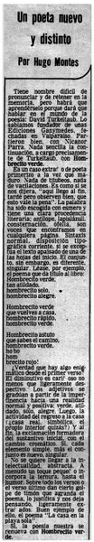 Un poeta nuevo y distinto [artículo] Hugo Montes.