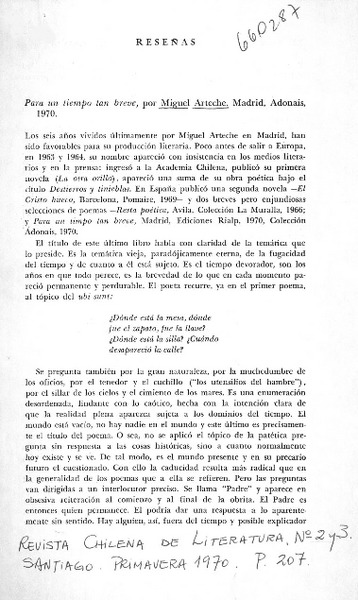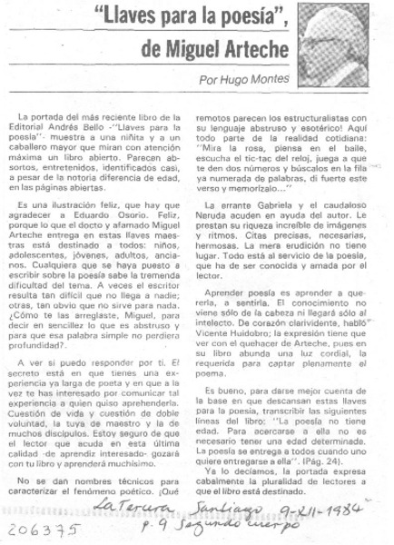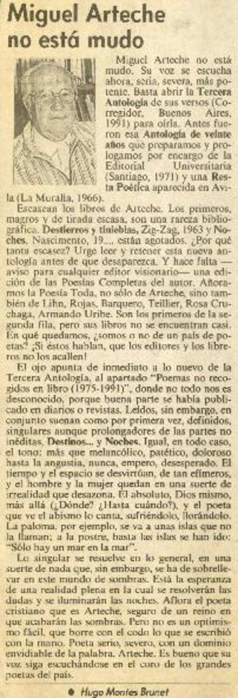 Un Poeta: Miguel Arteche [artículo] Hugo Montes B.