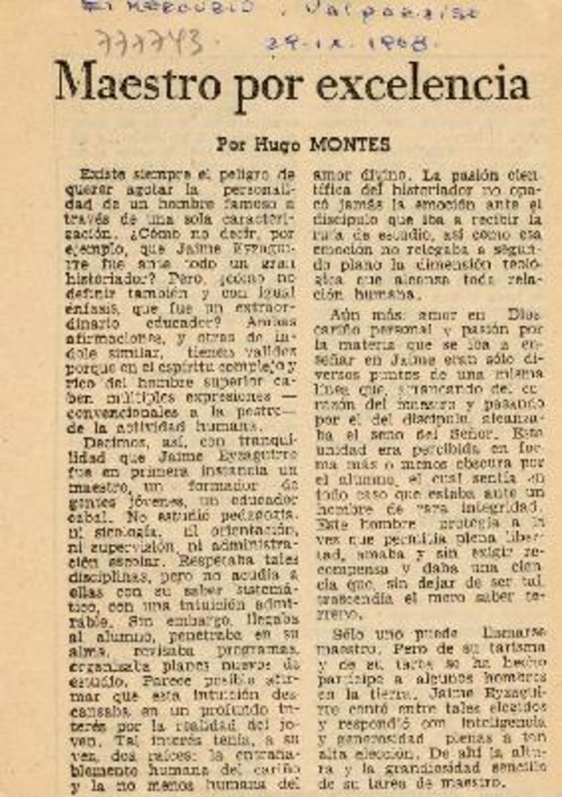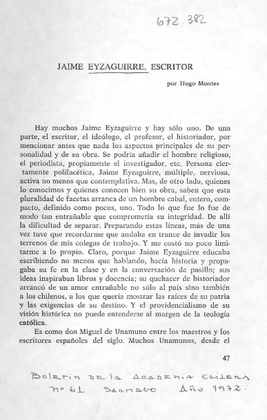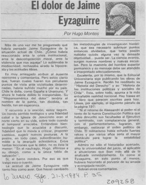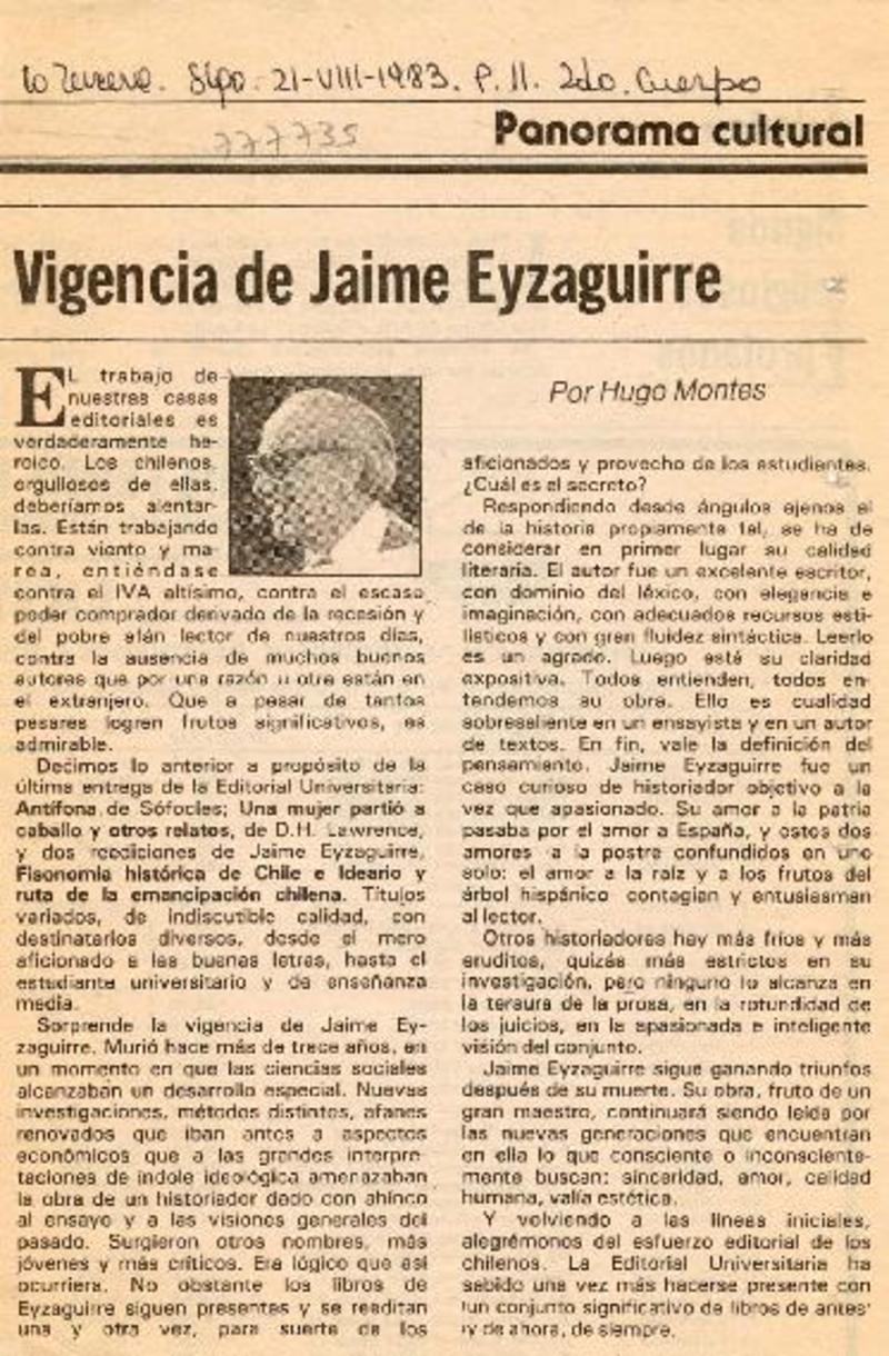 Vigencia de Jaime Eyzaguirre [artículo] Hugo Montes.