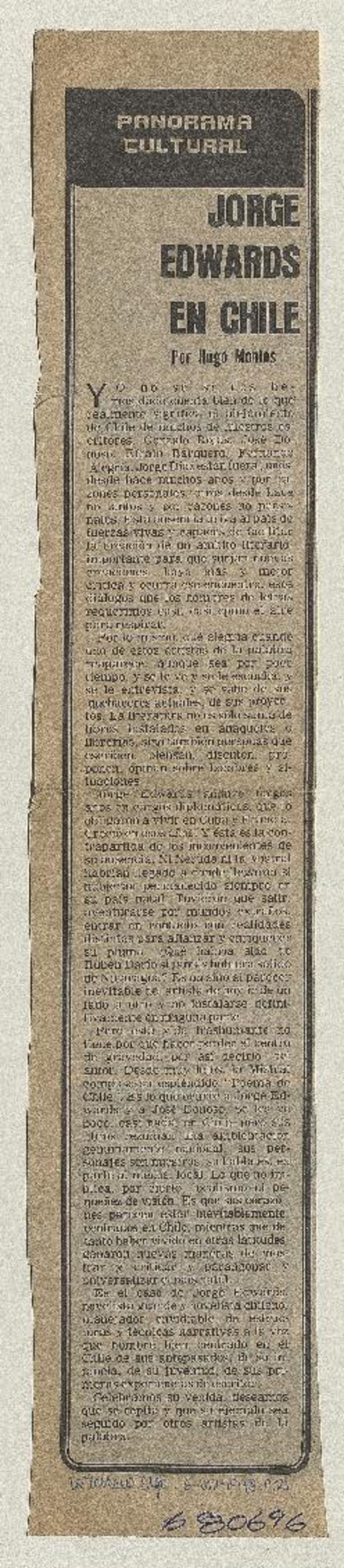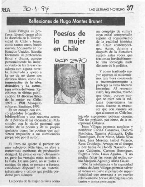 Un poeta chileno editado en Francia [artículo] Hugo Montes.
