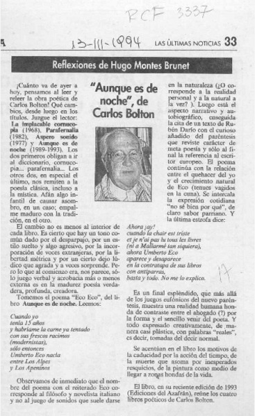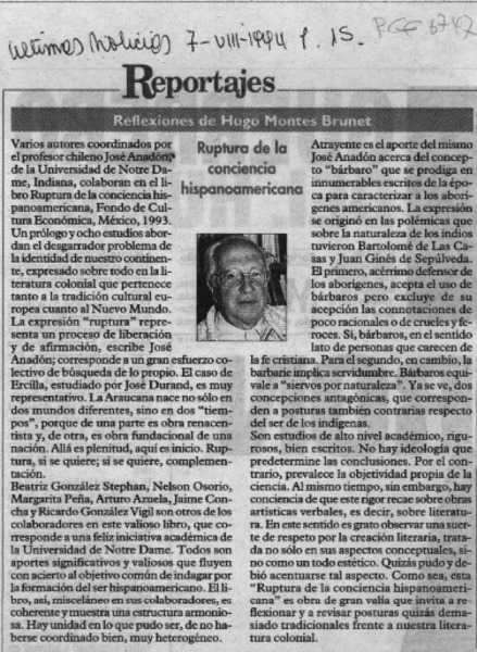 Aurora y final del día [artículo] Hugo Montes Brunet.