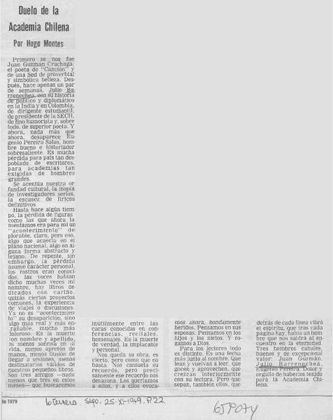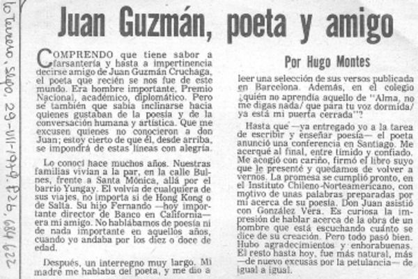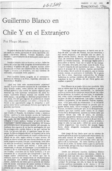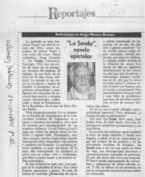 A propósito de la novela de Jorge Guzmán [artículo] Hugo Montes Brunet.