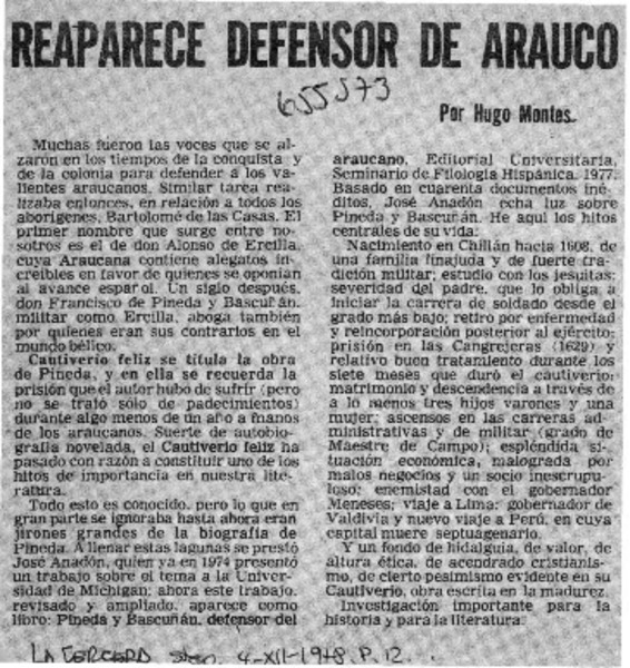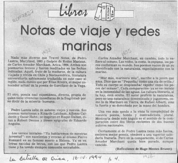 Un libro con alas [artículo] Hugo Montes Brunet.