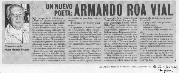 Un nuevo poeta, Armando Roa Vial [artículo] Hugo Montes Brunet.