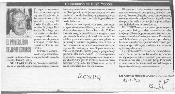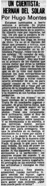 Un cuentista: Hernán del Solar [artículo] Hugo Montes.