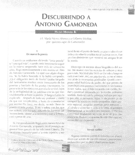 Antonio Gamoneda visto por María Nieves Alonso [artículo]Hugo Montes B.