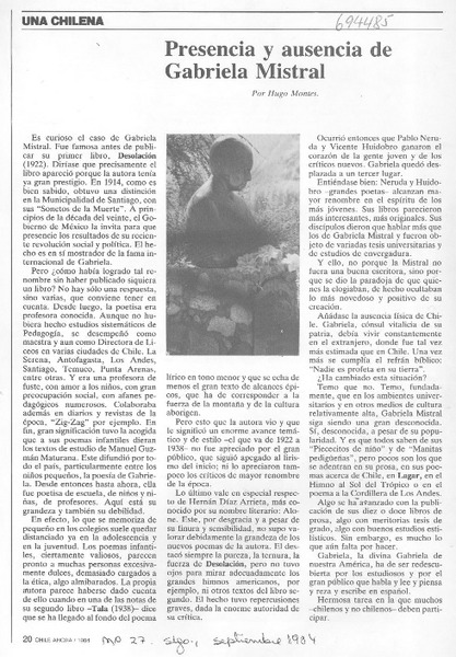 Cartas de amor Gabriela Mistral [artículo] Hugo Montes.