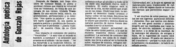 Antología poética de Gonzalo Rojas [artículo] Hugo Montes.