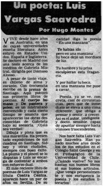 Un poeta: Luis Vargas Saavedra [artículo] Hugo Montes.