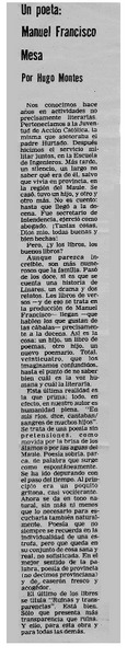 Un poeta: Manuel Francisco Mesa [artículo] Hugo Montes.
