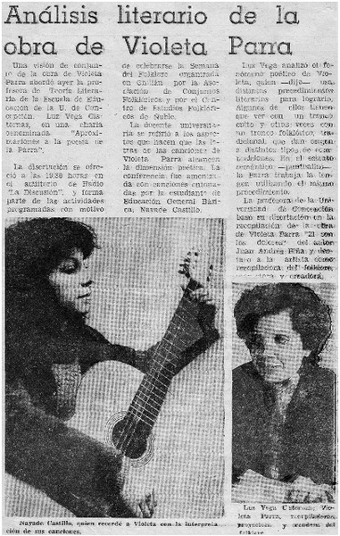 Una poetisa : Violeta Parra [artículo] Hugo Montes.