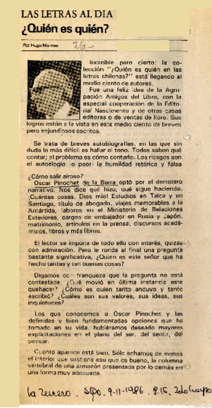 Autorretrato de los escritores [artículo] Hugo Montes.
