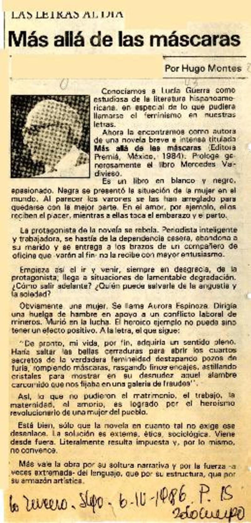 Una novela que dará que hablar [artículo] Hugo Montes.
