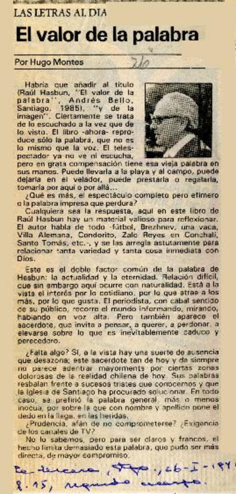 Acerca del "Verbo" de Andrés Morales [artículo] Hugo Montes Brunet.