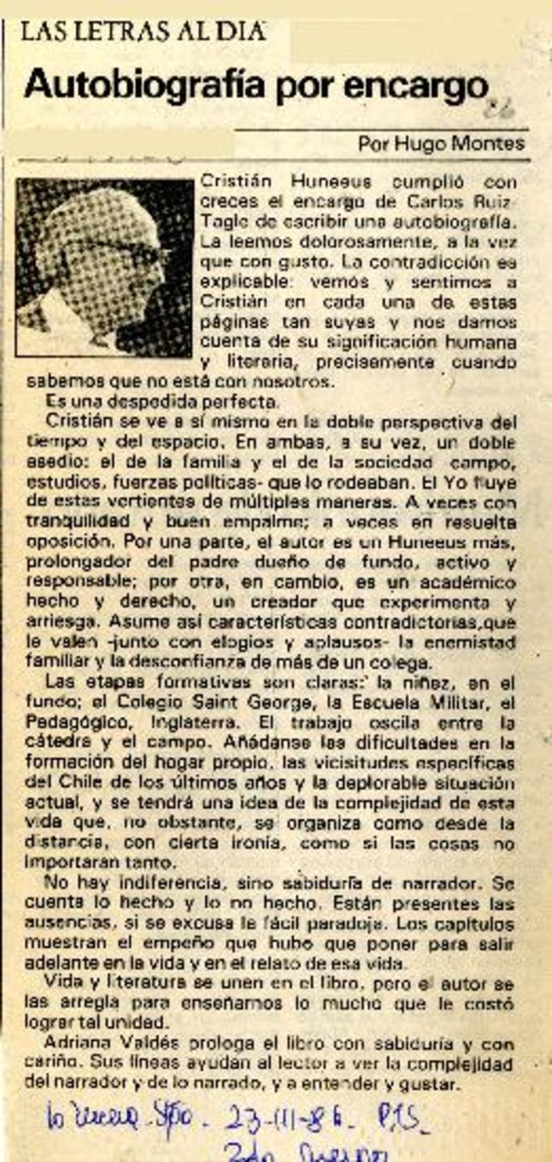 HUNEEUS, CRISTIAN - AUTOBIOGRAFIA POR ENCARGO