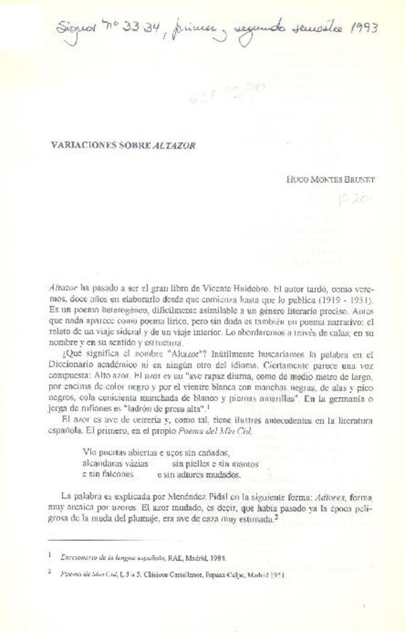 Variaciones sobre Altazor [artículo] Hugo Montes Brunet.