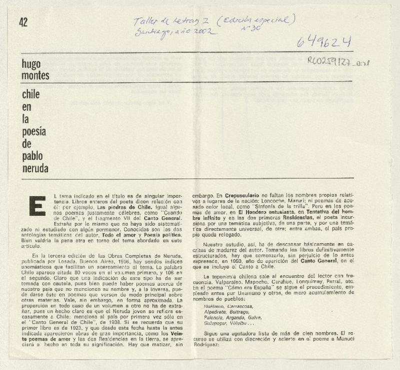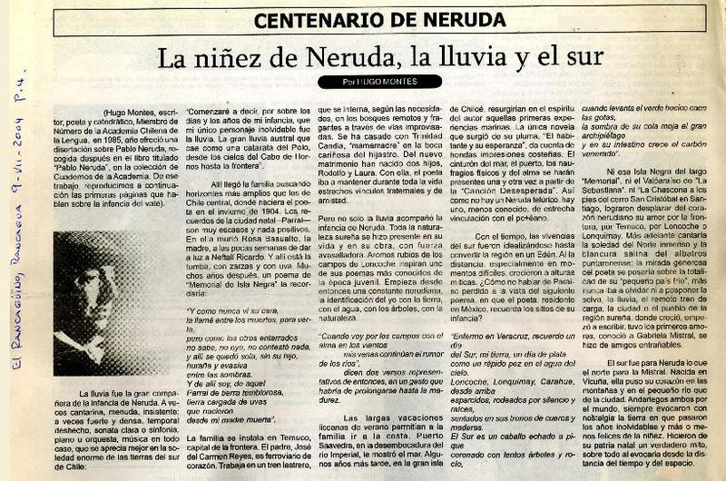 Chile en la poesía de Pablo Neruda [artículo] Hugo Montes