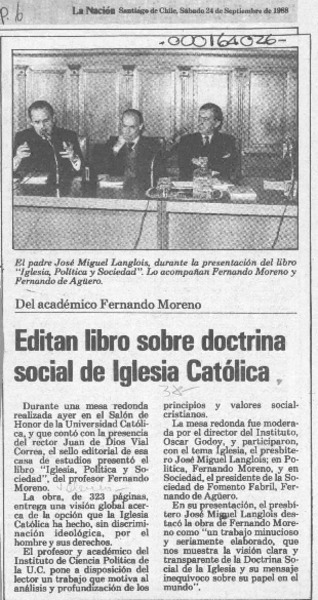 Editan libro sobre doctrina social de Iglesia Católica [artículo].