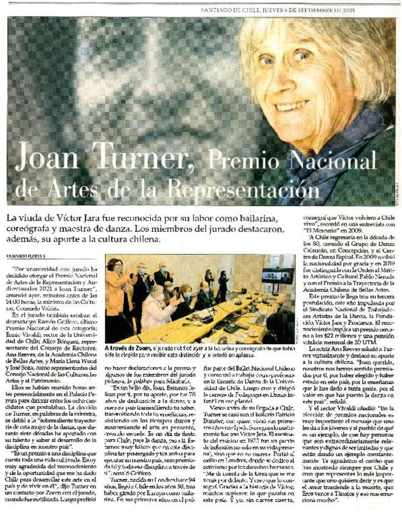 Joan Turner, Premio Nacional de Artes de la Representación [artículo] Raimundo Flores