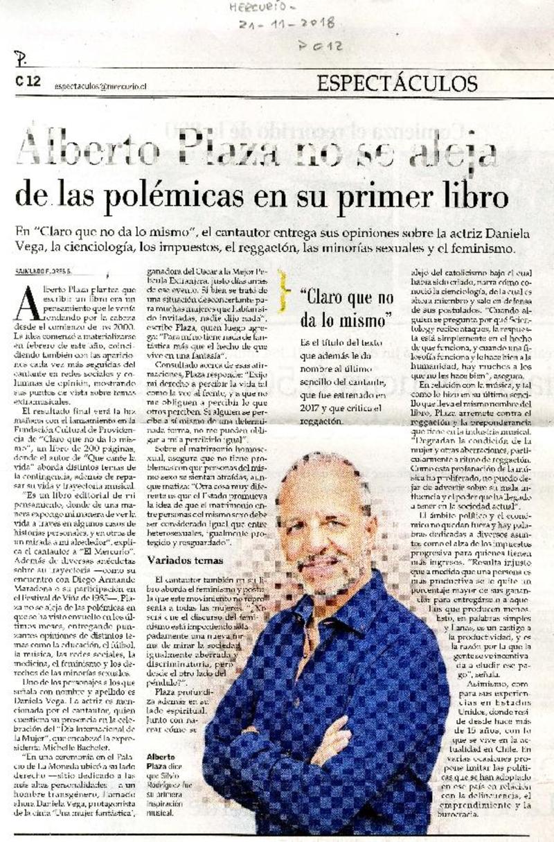 Alberto Plaza no se aleja de las polémicas en su primer libro [artículo] Raimundo Flores.