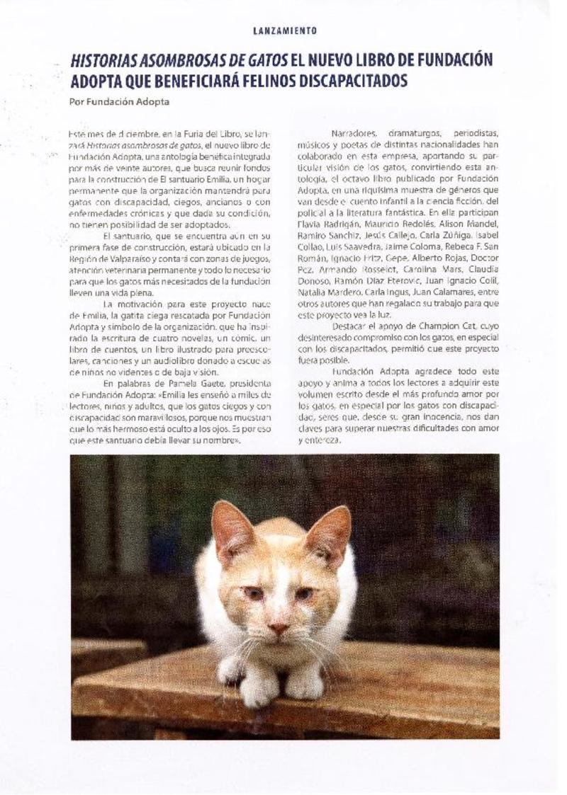Historias asombrosas de gatos : El nuevo libro de fundación adopta que beneficiará felinos discapacitados [artículo].