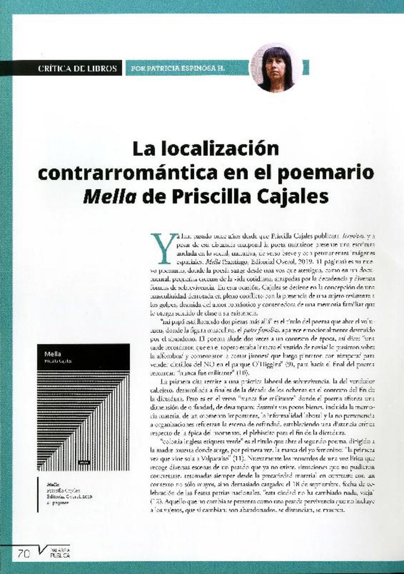 La localización contrarromántica en el poemario Mella de Priscilla Cajales [artículo] Por Patricia Espinosa H.