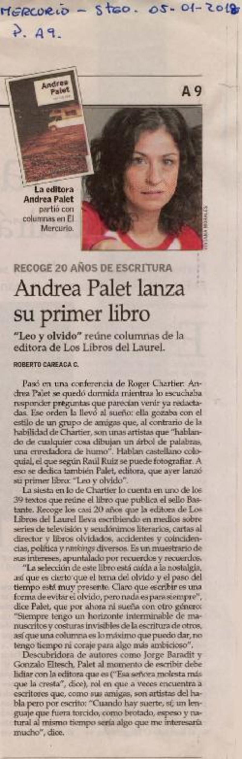 Andrea Palet lanza su primer libro [artículo] Roberto Careaga C.