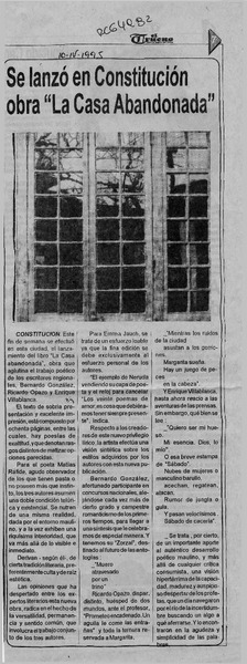 Hoy lanzan en Constitución libro "La casa abandonada" [artículo].