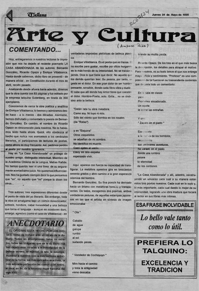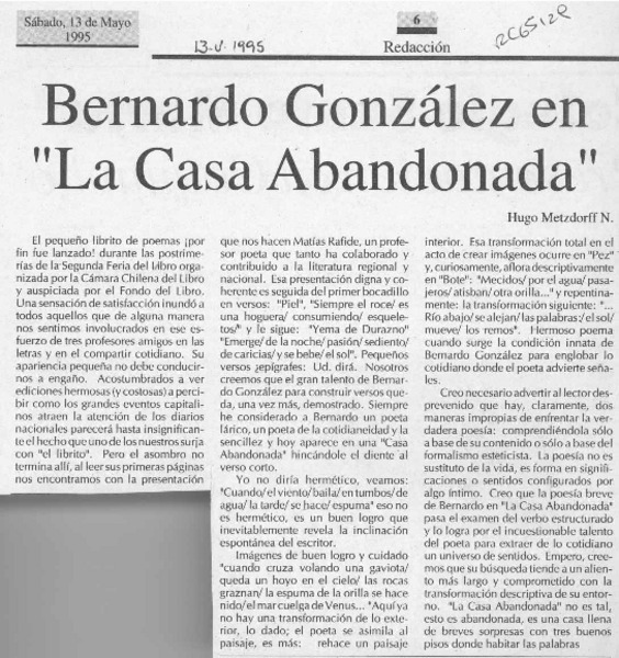 Bernardo González en "La casa abandonada" [artículo] Hugo Metzdorff N.