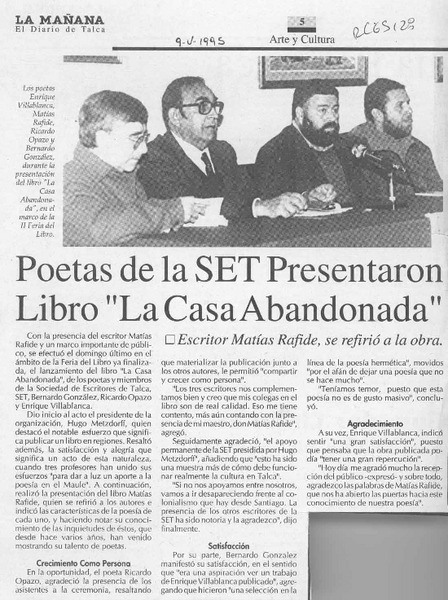 Poetas de la SET presentaron libro "La casa abandonada" [artículo].