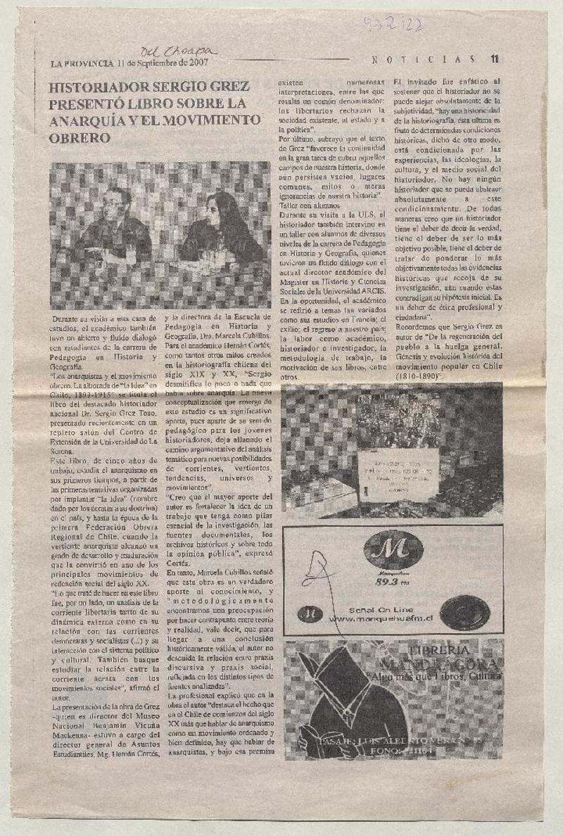 Historiador Sergio Grez presentó libro sobre la anarquía y el movimiento obrero. [artículo]