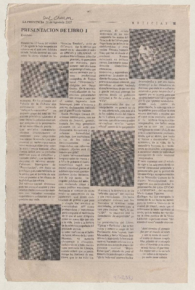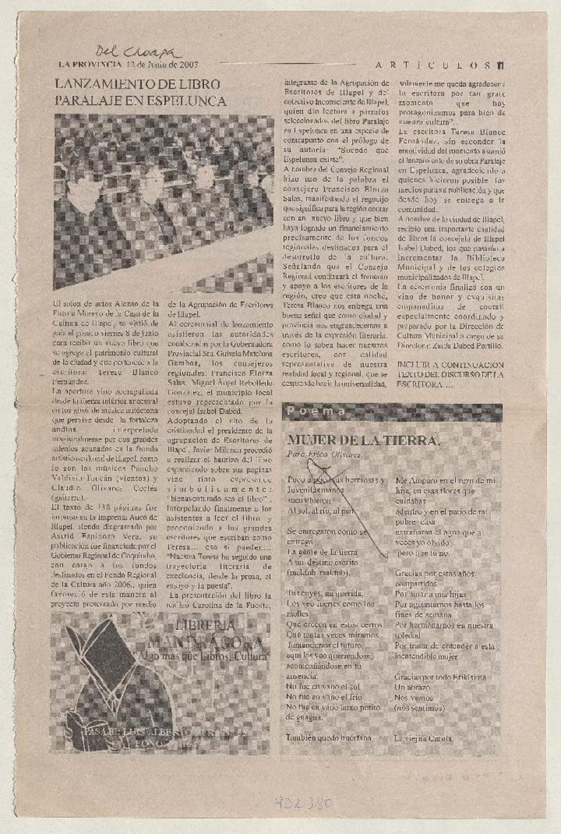 Lanzamiento de libro Paralaje en Espelunca. [artículo]