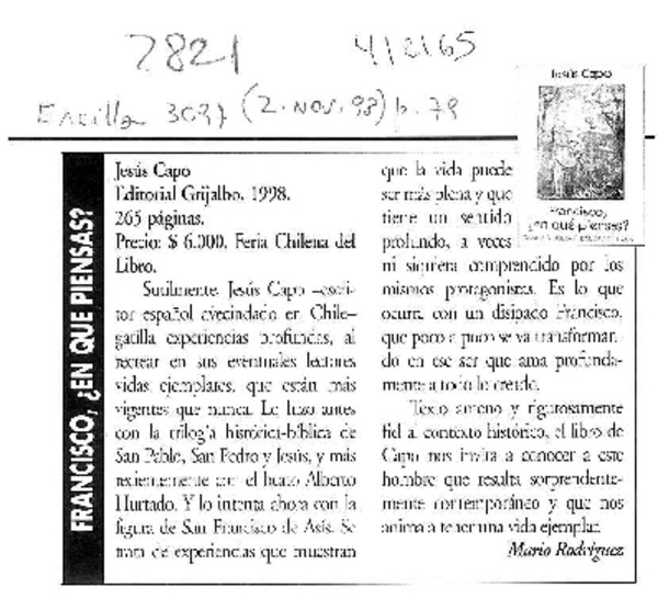 Autores españoles - Capo, Jesús - Francisco ¿en qué piensas?