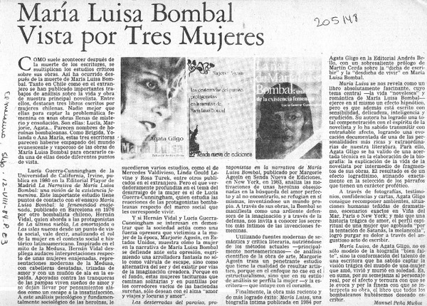 María Luisa Bombal vista por tres mujeres [artículo] Manuel Peña Muñoz.