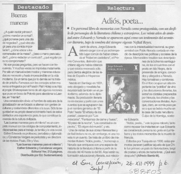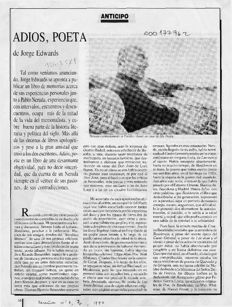 Adiós, poeta --, de Jorge Edwards [artículo] Apir.