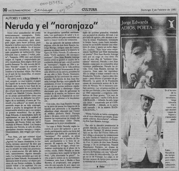 Autores chilenos - Neruda, Pablo - Edwars, Jorge - Adiós poeta