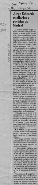 Jorge Edwards en diarios y revistas de Madrid [artículo].