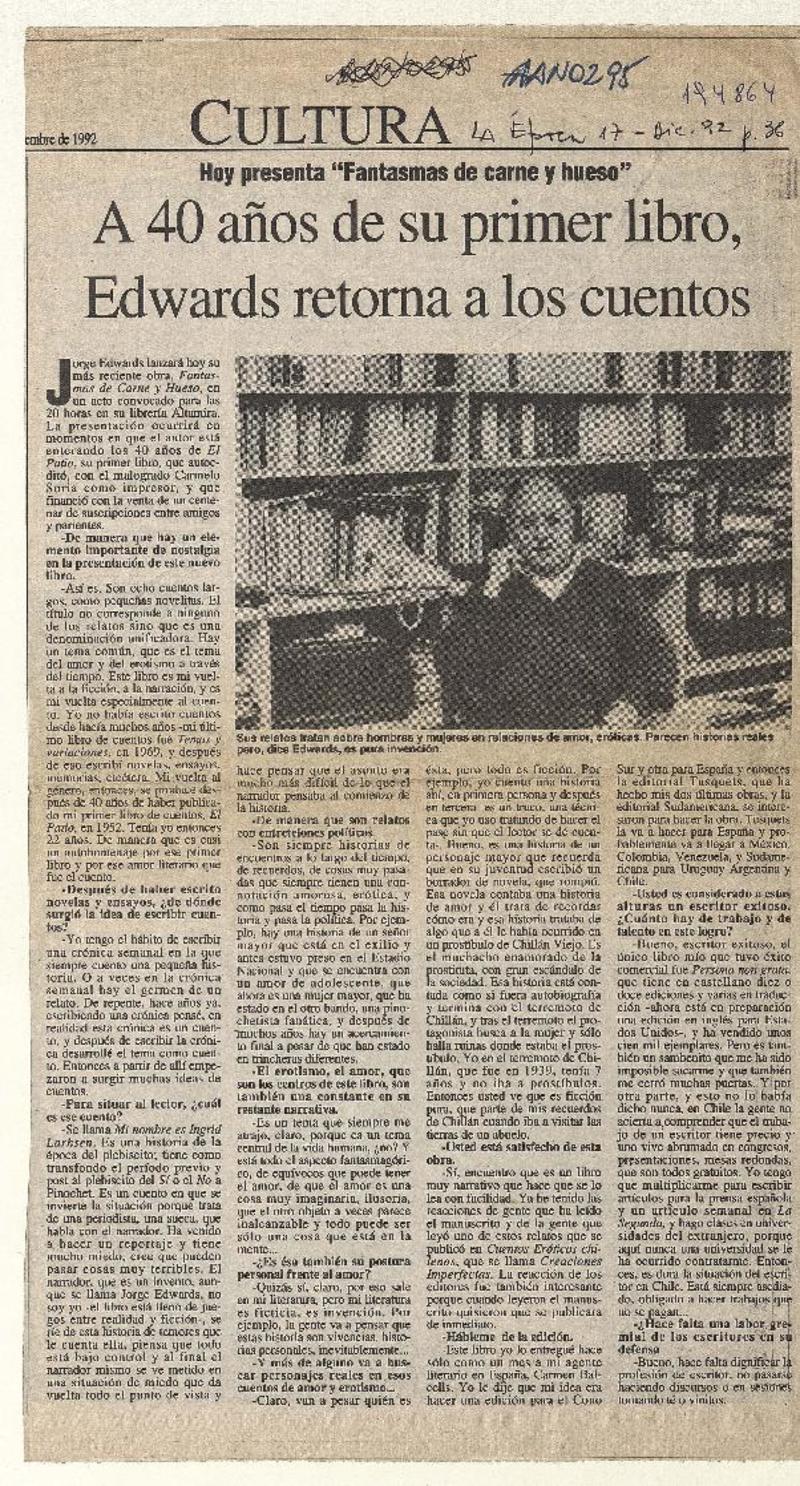 A 40 años de su primer libro, Edwards retorna a los cuentos [artículo].