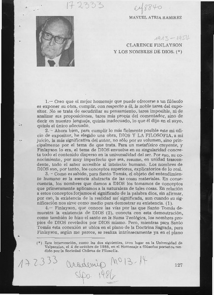 Clarence Finlayson y los nombres de Dios [artículo] Manuel Atria Ramírez.